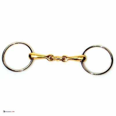 Tredelt argentan bid med bidringe i messing.