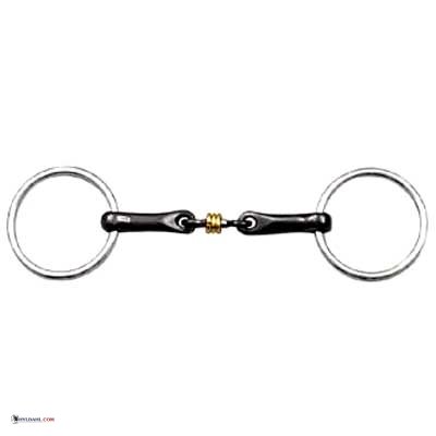 Tredelt sweet-iron bid, med tre kobberrinde i midterstykket. 12 mm tykt bidringe Ø 70.