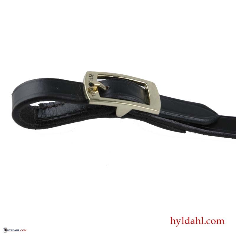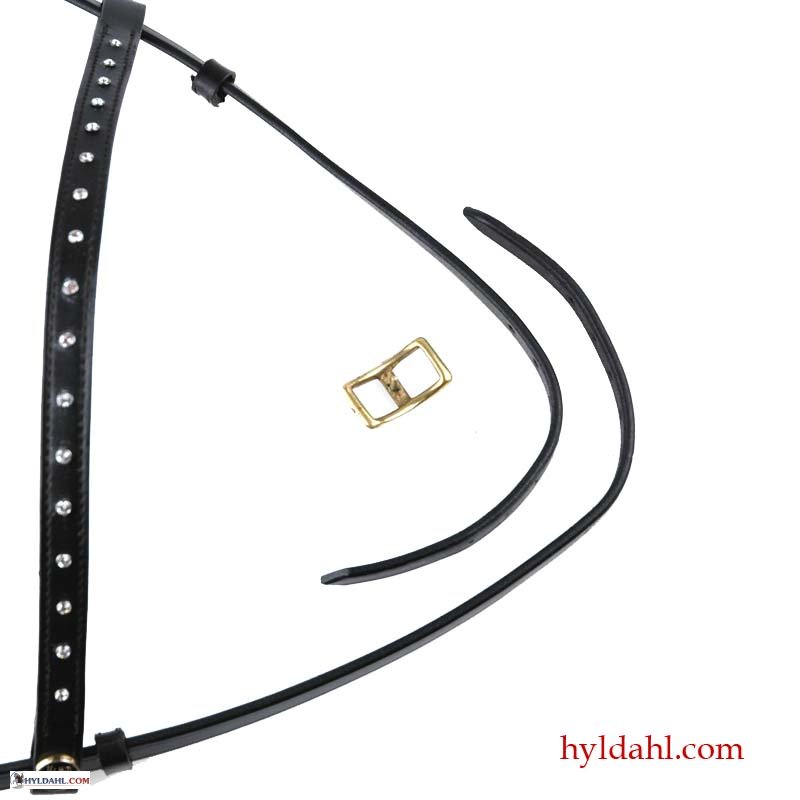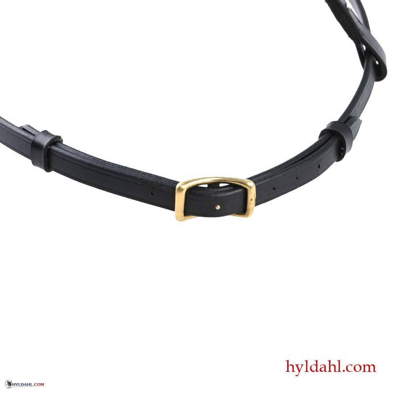 Nakkestykke i engelsk læder. Den unikke lukning i nakken gør det muligt hurtigt at skifte pandebåndet.