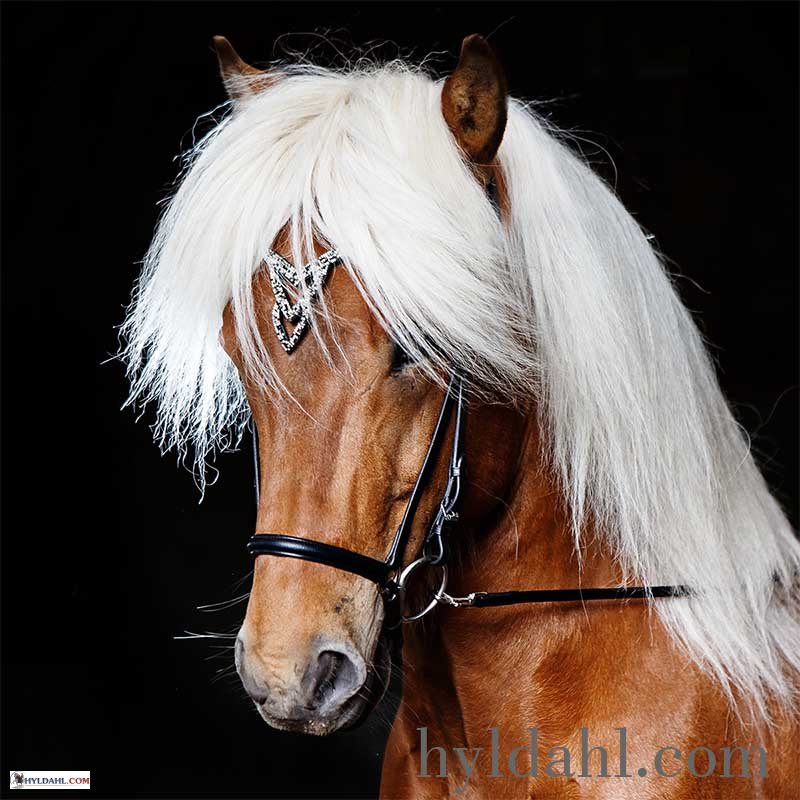 Eksklusivt nakkestykke i kvalitetslæder med flotte krystaller monteret på det udstandsede pandestykke