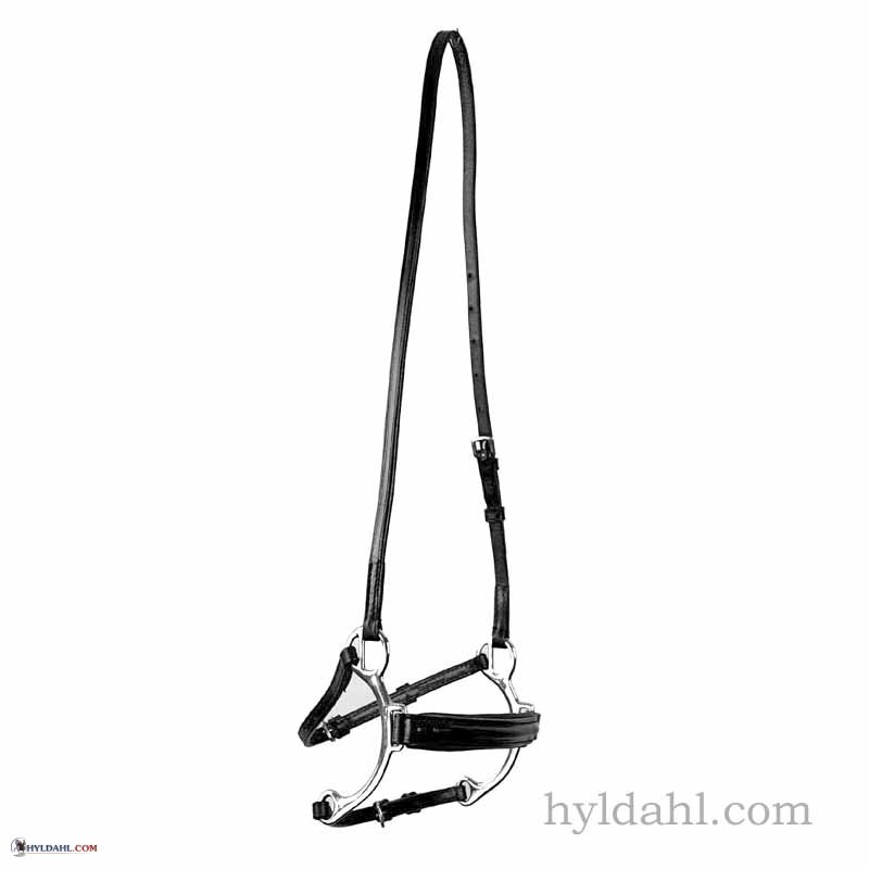 Bøjlenæsebånd giver bedre frihed ved biddet, sidestykke i rustfri eller sort metal, spænder i rustfri.