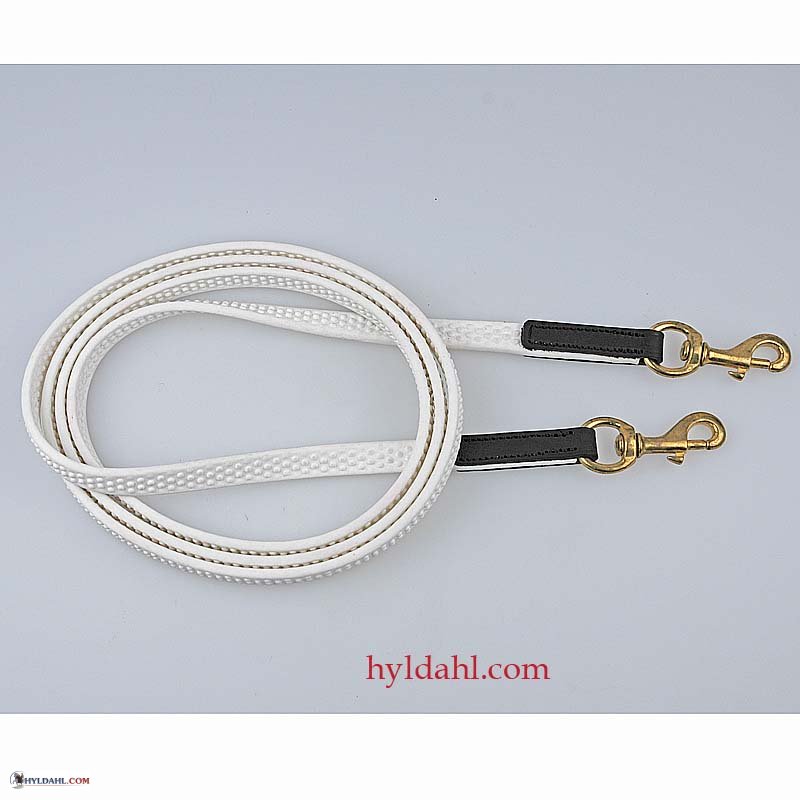 Kraftig massiv gummitøjle fremstillet af særdeles gribefast BioThane® med dupper. Vælg mellem farverne hvid og sort og metal i messing eller sølv.