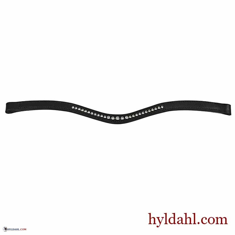 Buet pandebånd i sort engelsk læder med 29 klare krystaller i sølvindfatning.